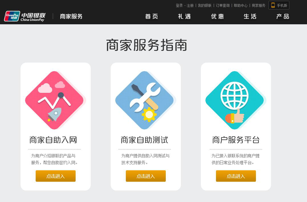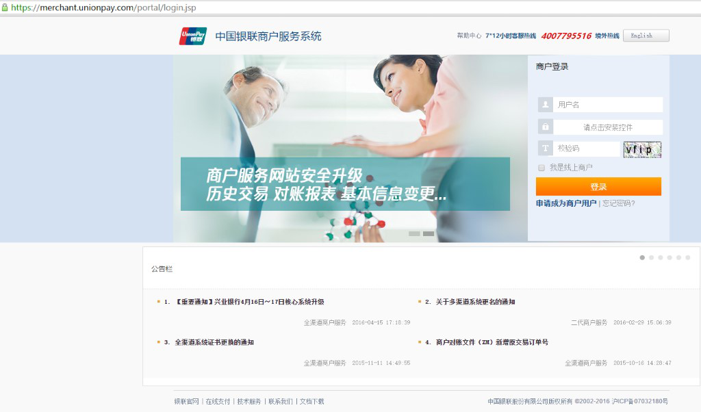 中国银联商家服务中心(https://static.95516.com/static/merchant/service/index.html)