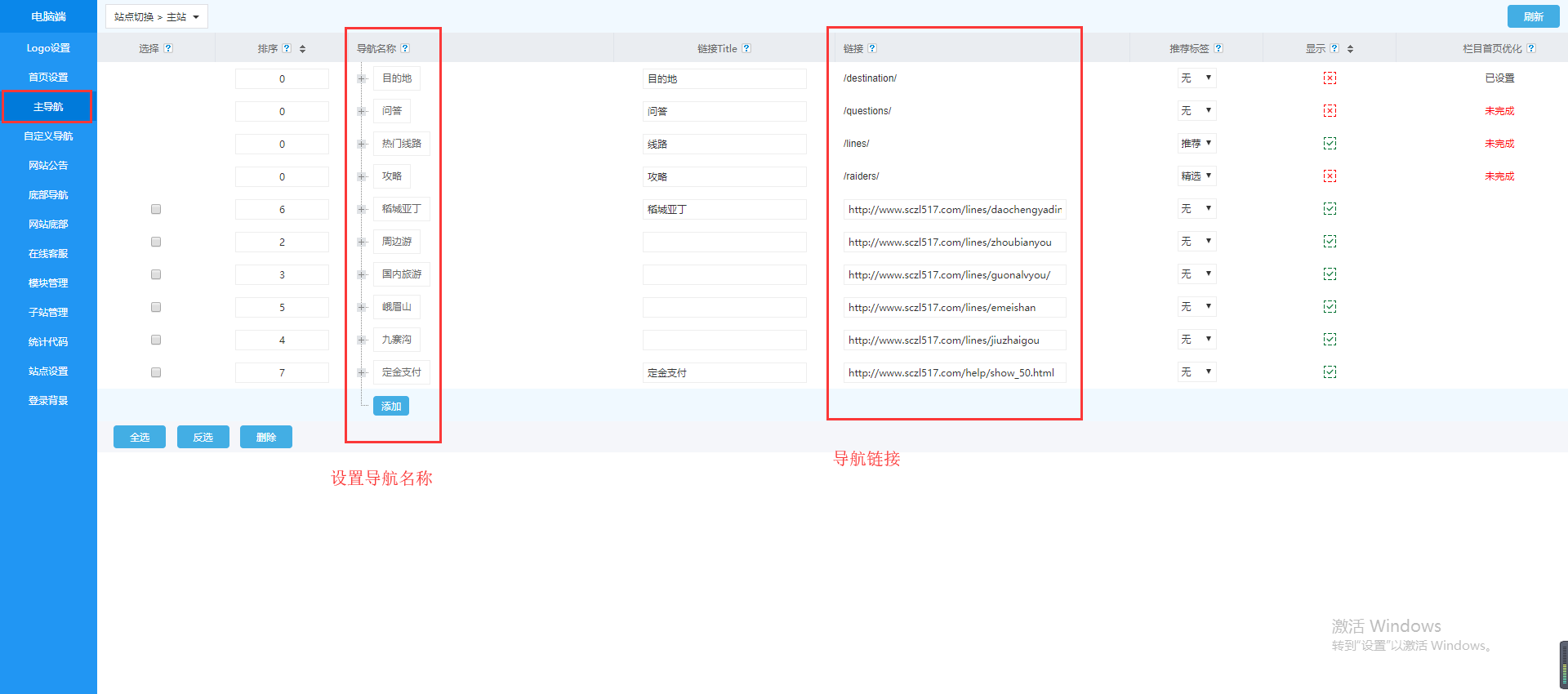 3. 主导航设置