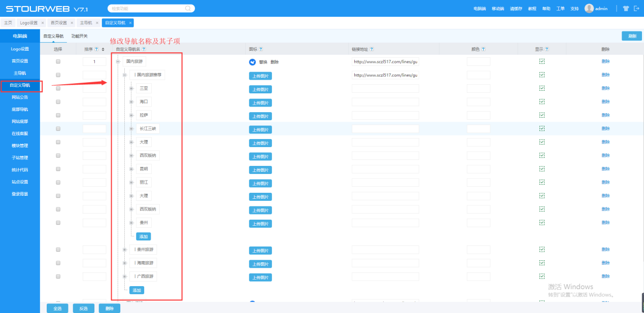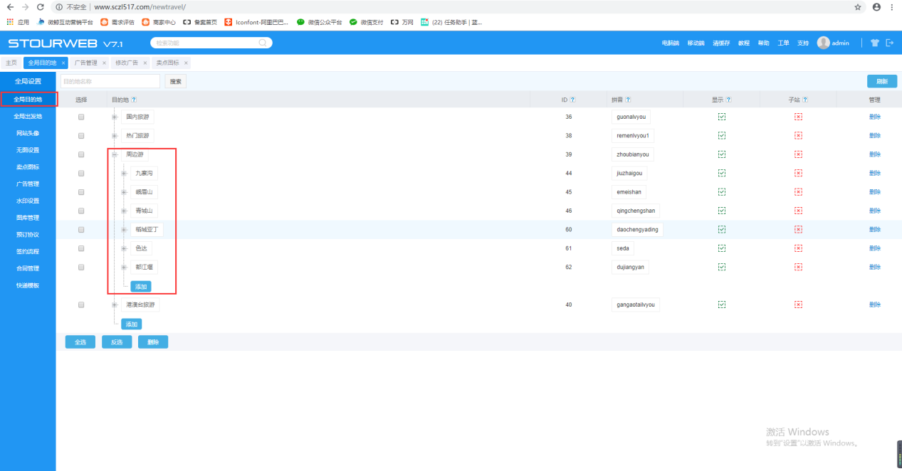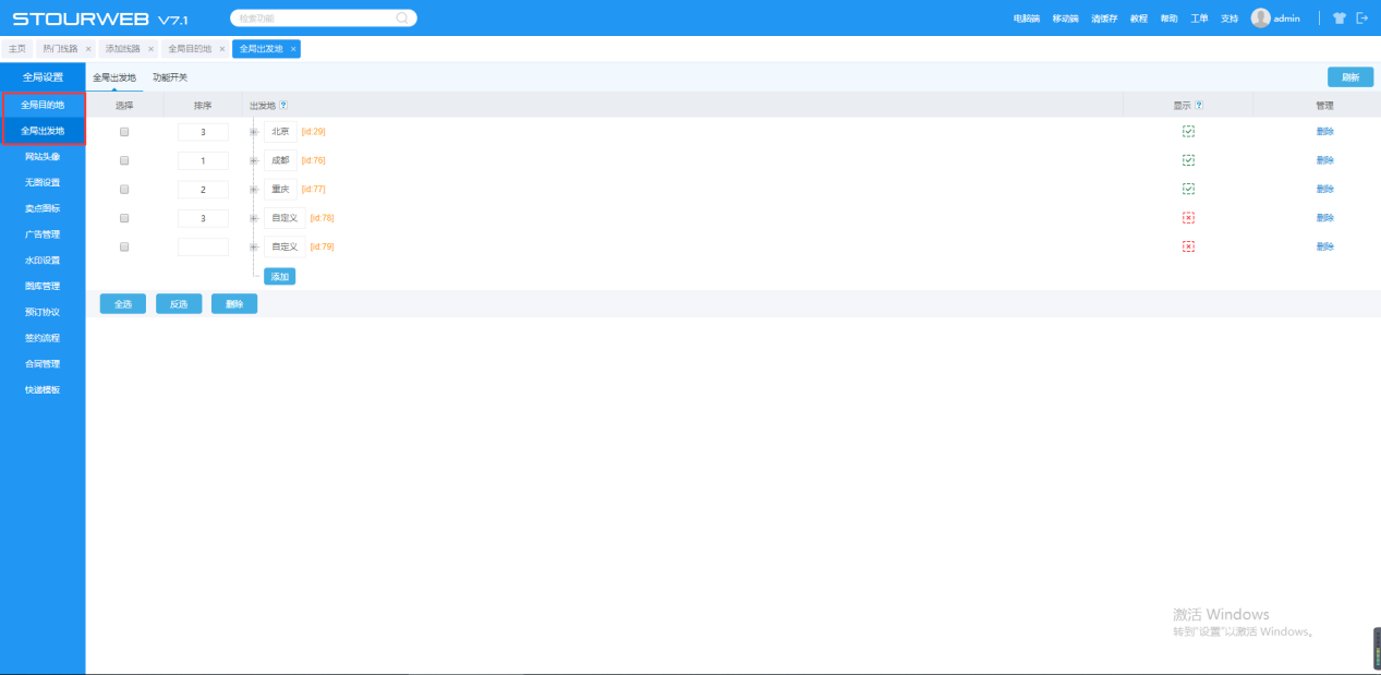 在【全局目的地】【全局出发地】进行增加、删除、修改