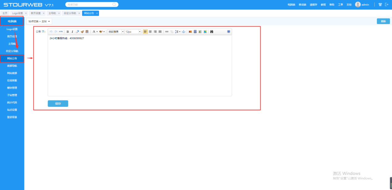 5. 网站公告设置