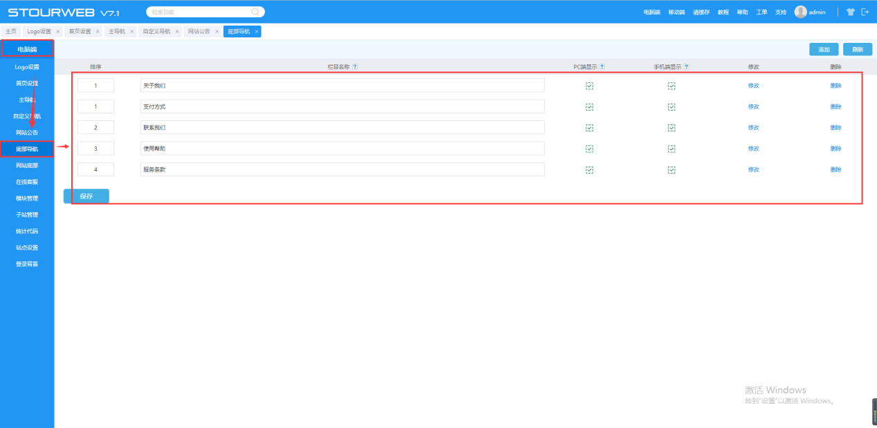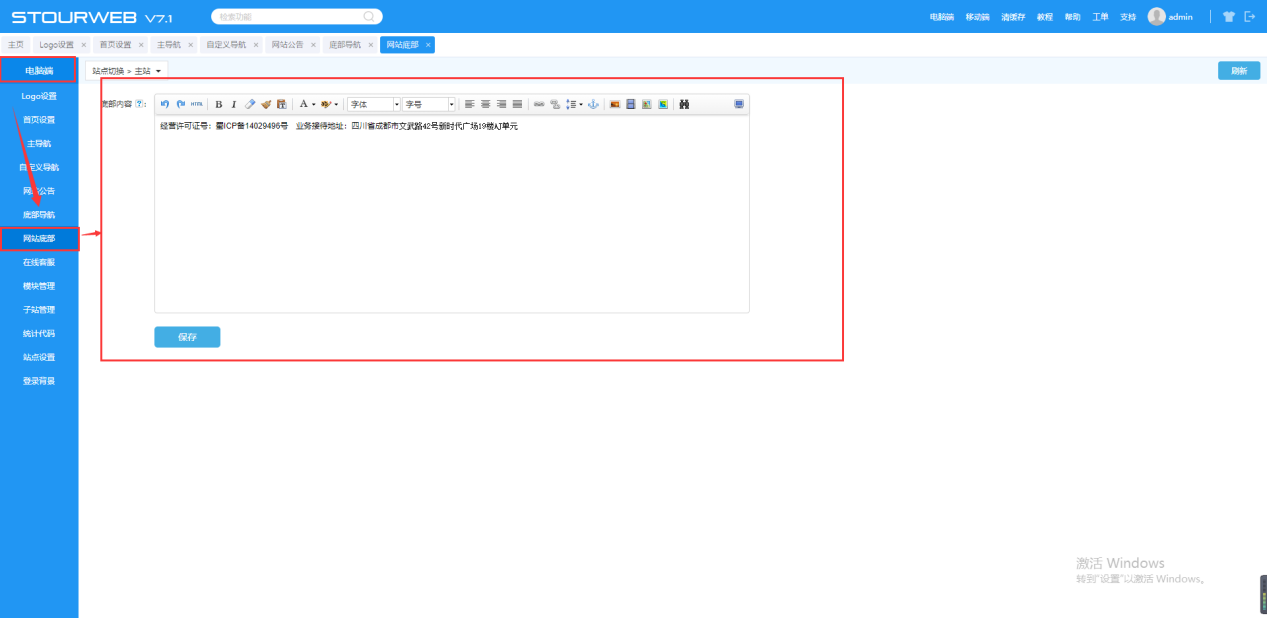 7. 网站底部设置