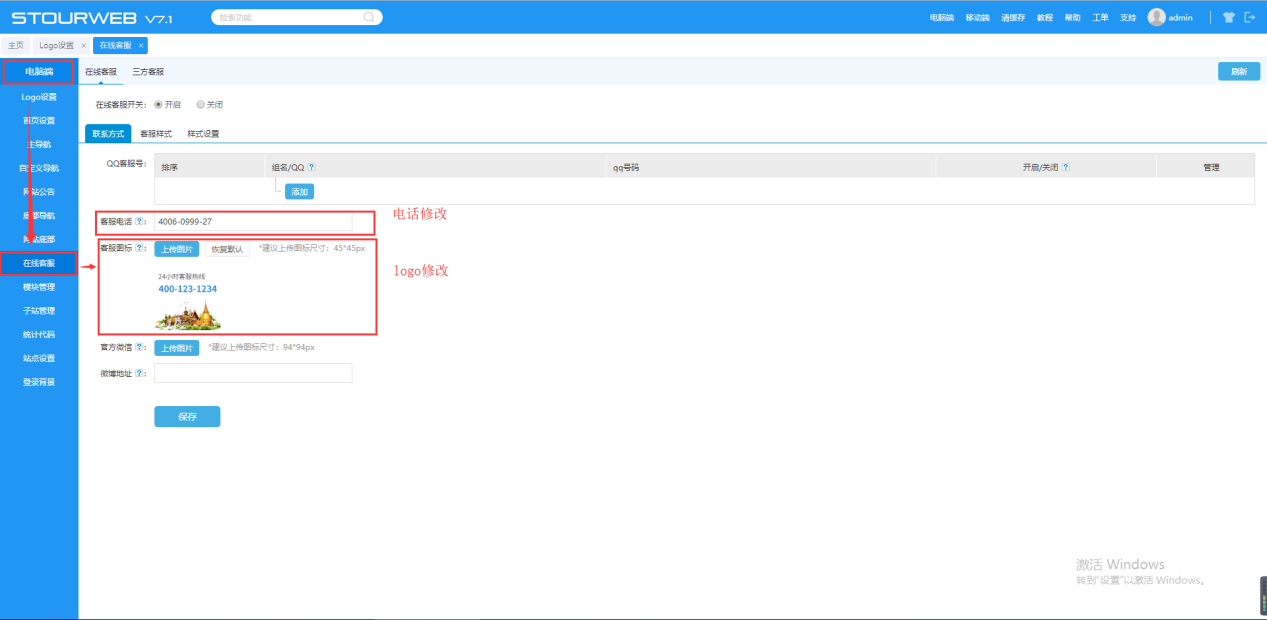 8. 在线客服设置
