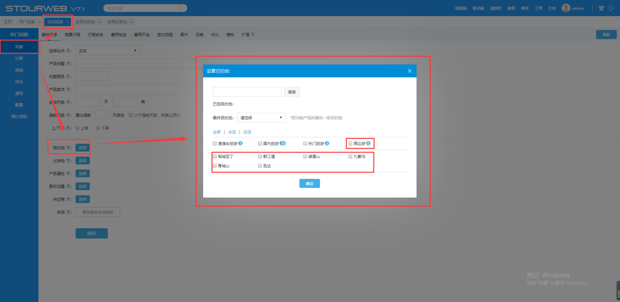 选择相应的目的地就会再相应的前台显示