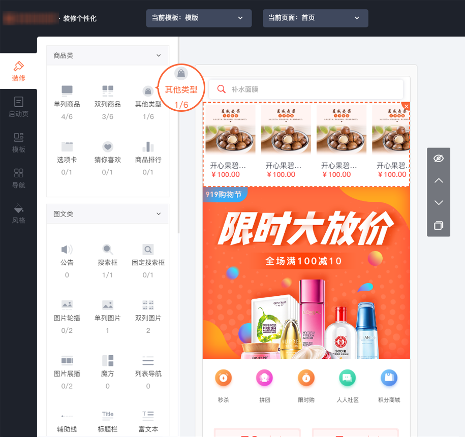 店铺装修的元素是给业务端商家提供个性化装修的元素功能,业务端商家可以根据页面需求添加不同功能的元素,装修个性化页面。