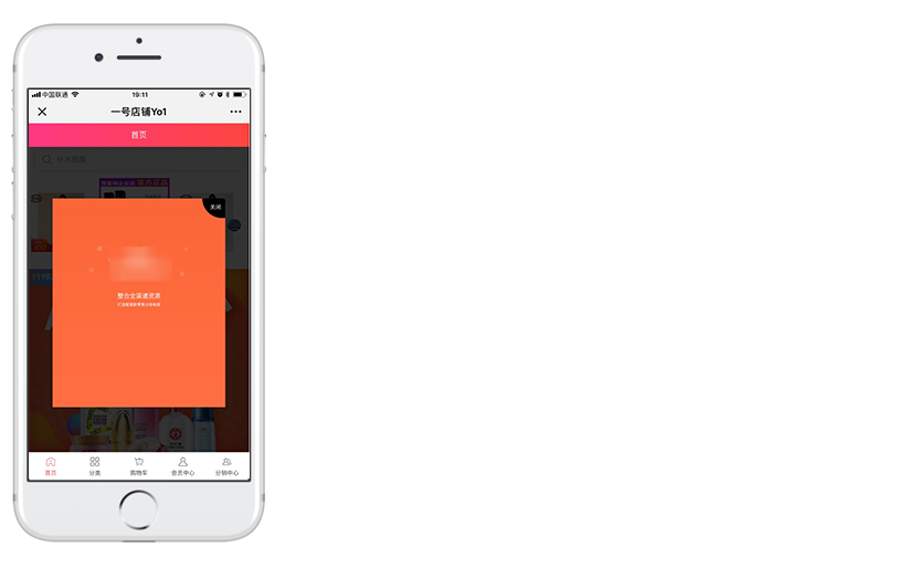 业务端商家可以在弹窗广告的图片选择链接,会员进入看到广告的图片点击即可跳转至链接页面,弹窗广告在手机端显示如下: