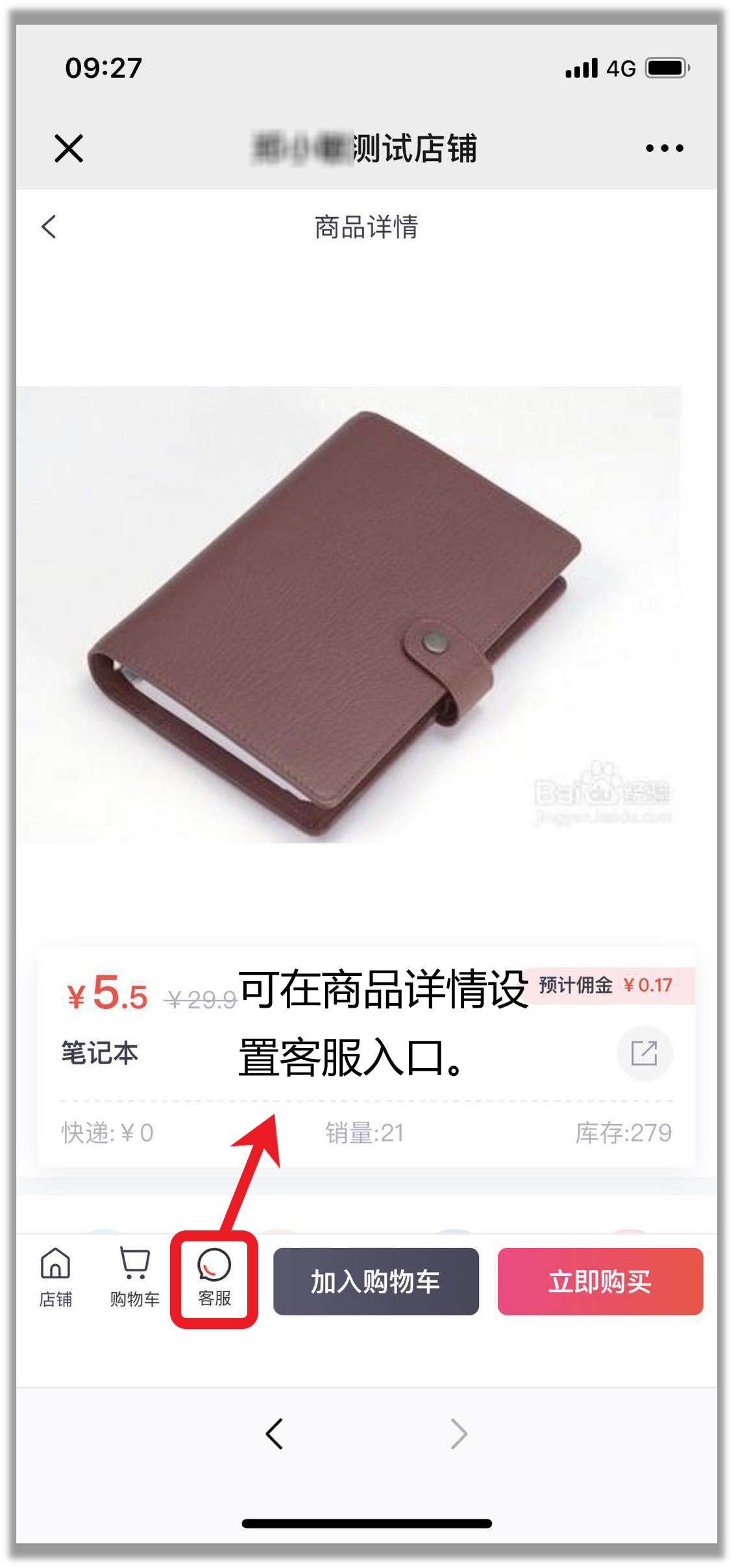 1、勾选客服入口后,手机端商品详情的客服入口展示如下图: