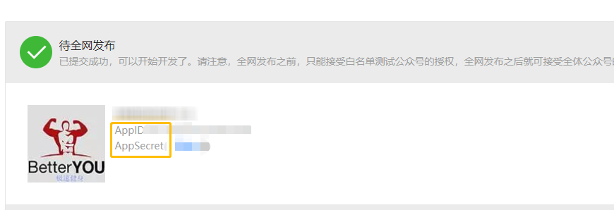 创建第三方平台成功后,点击详情,将第三方平台的Appid和AppSecret复制到管理端中。