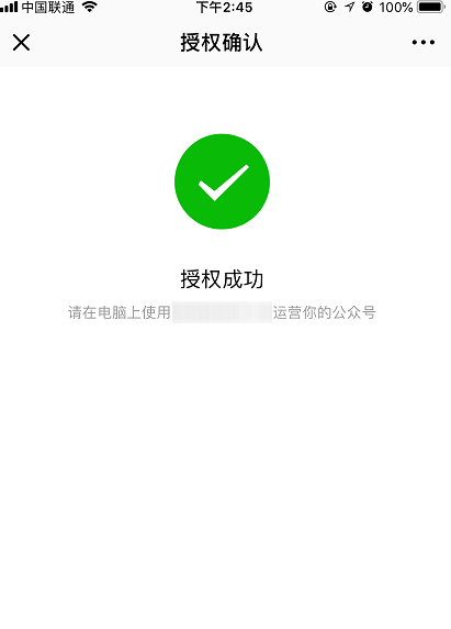 第四步:微信公众号平台配置完成后,业务端保存,公众号授权成功。