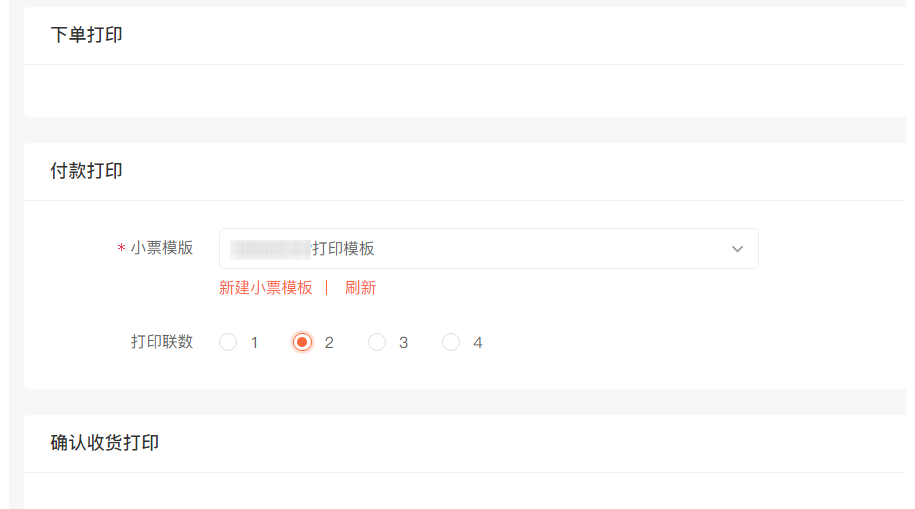 小票打印机打印条件分为:下单、付款、确认收货、会员充值、配置过程相同,以下为下单打印: